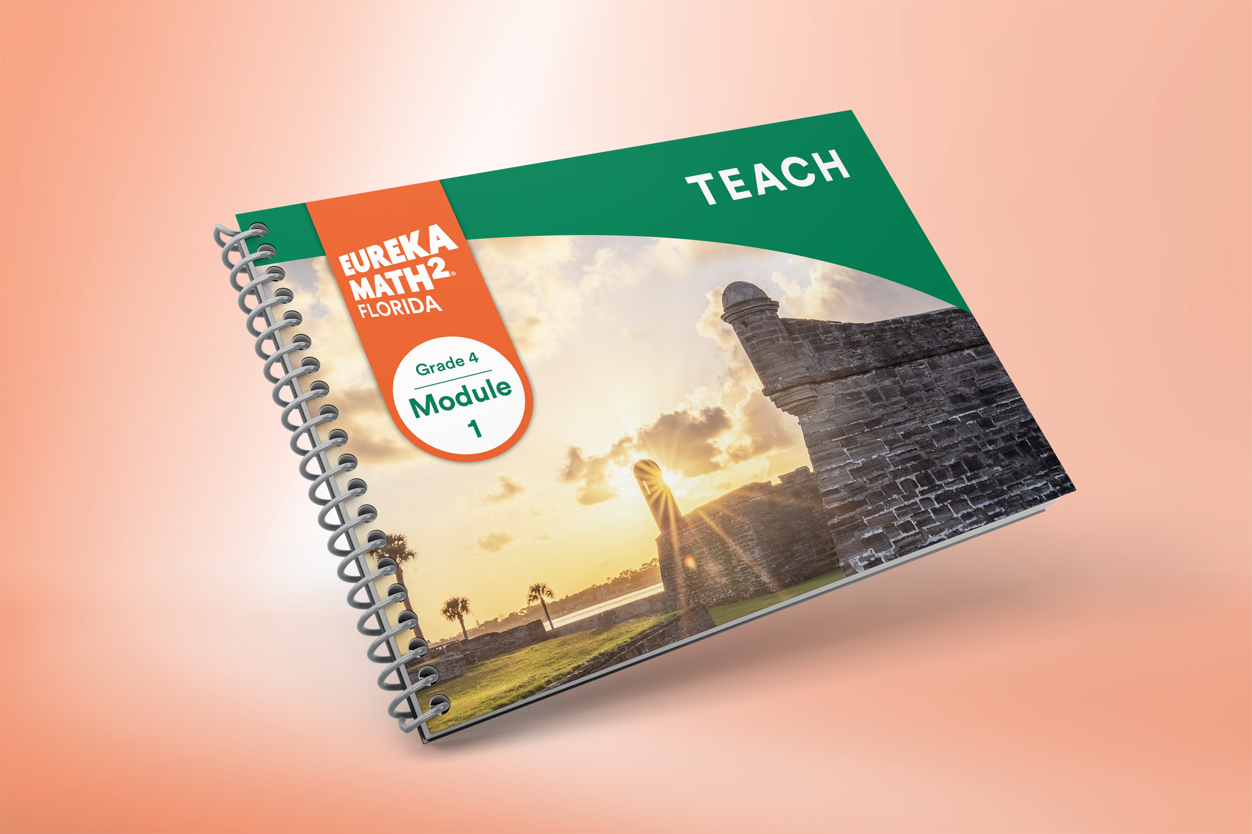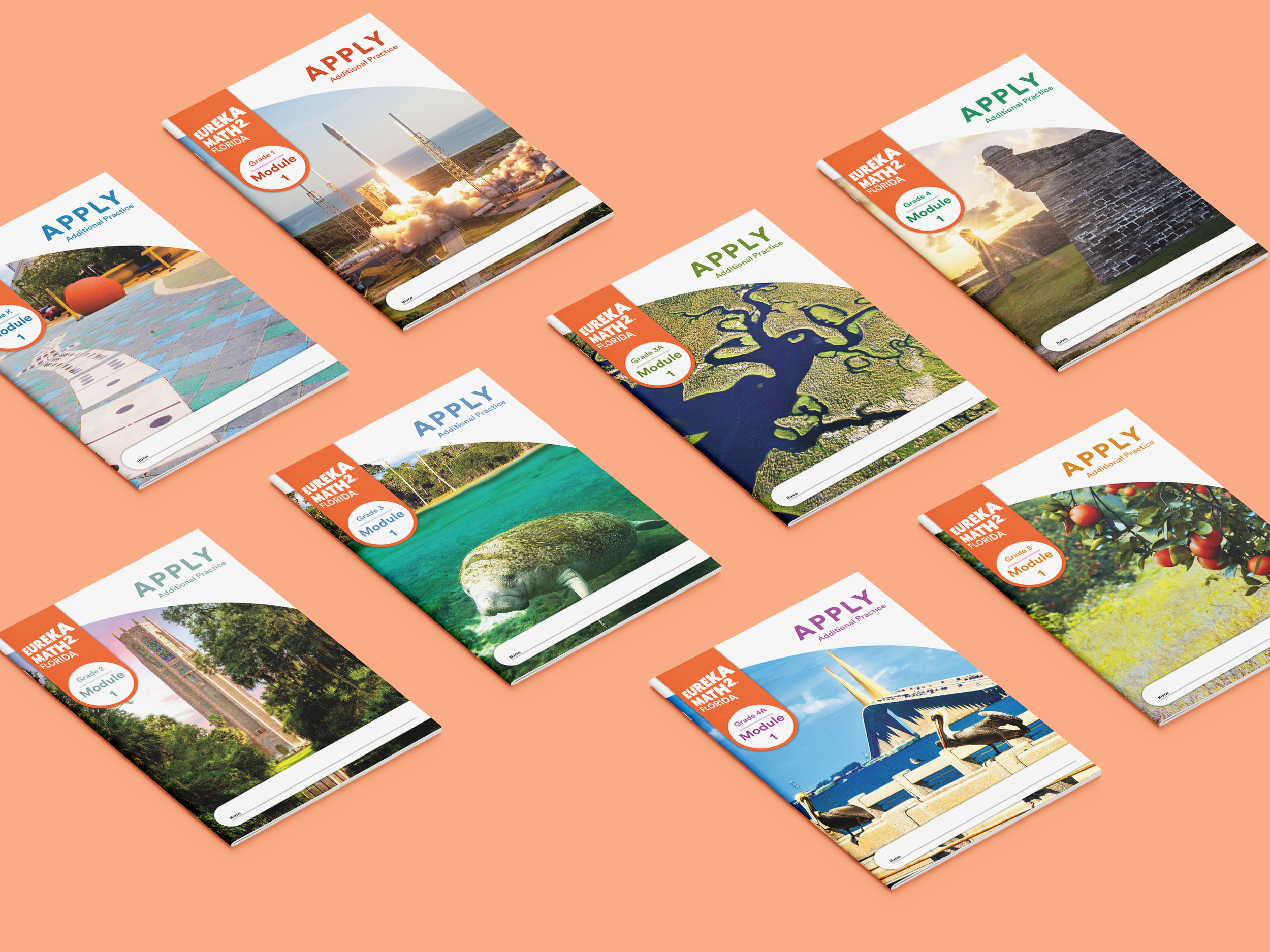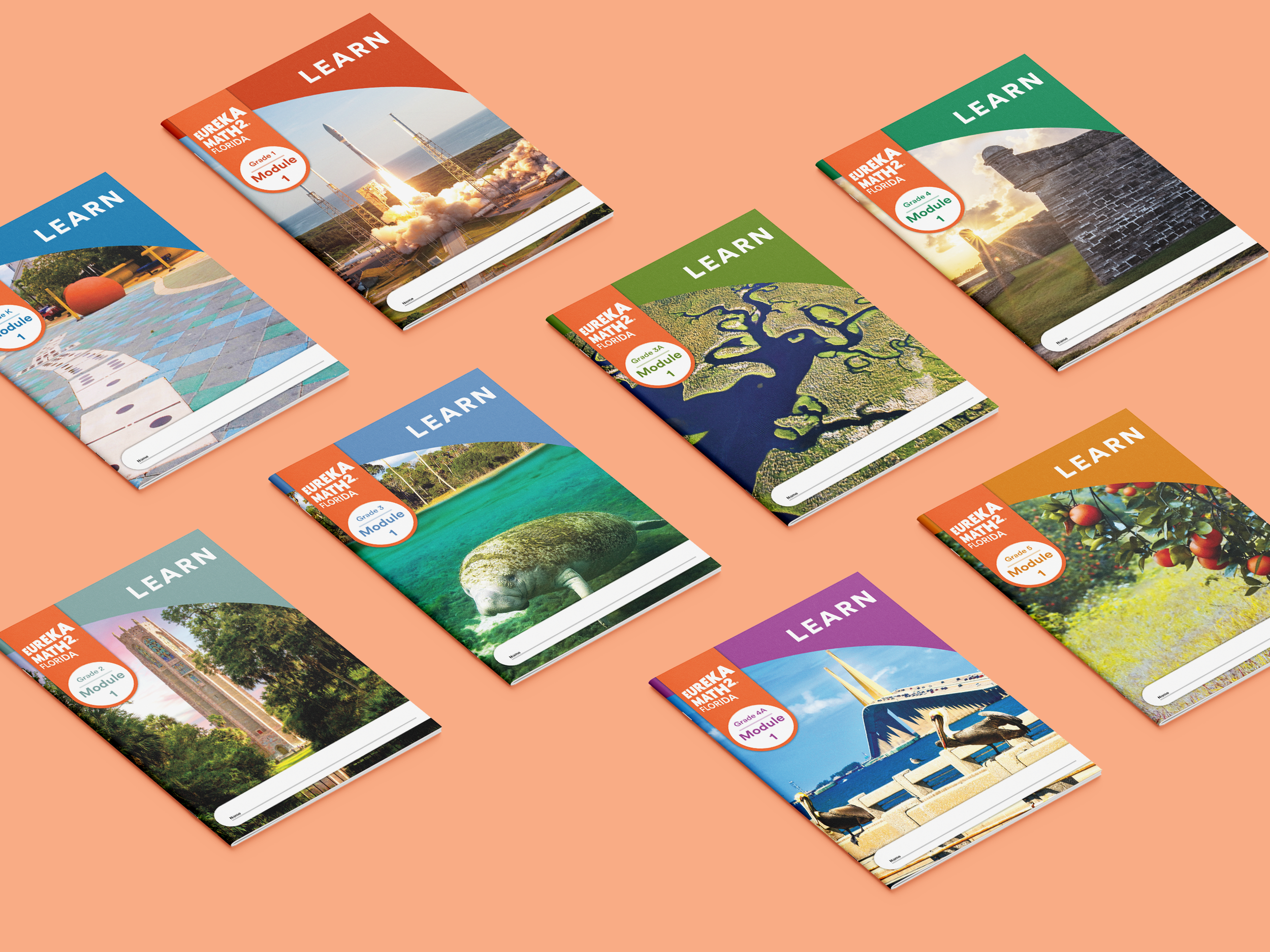 Here is the final cover design for Eureka Math² Florida. Using the Eureka Math² California cover design, the visual design team sourced and utilized imagery from Florida to complete the redesigned cover.