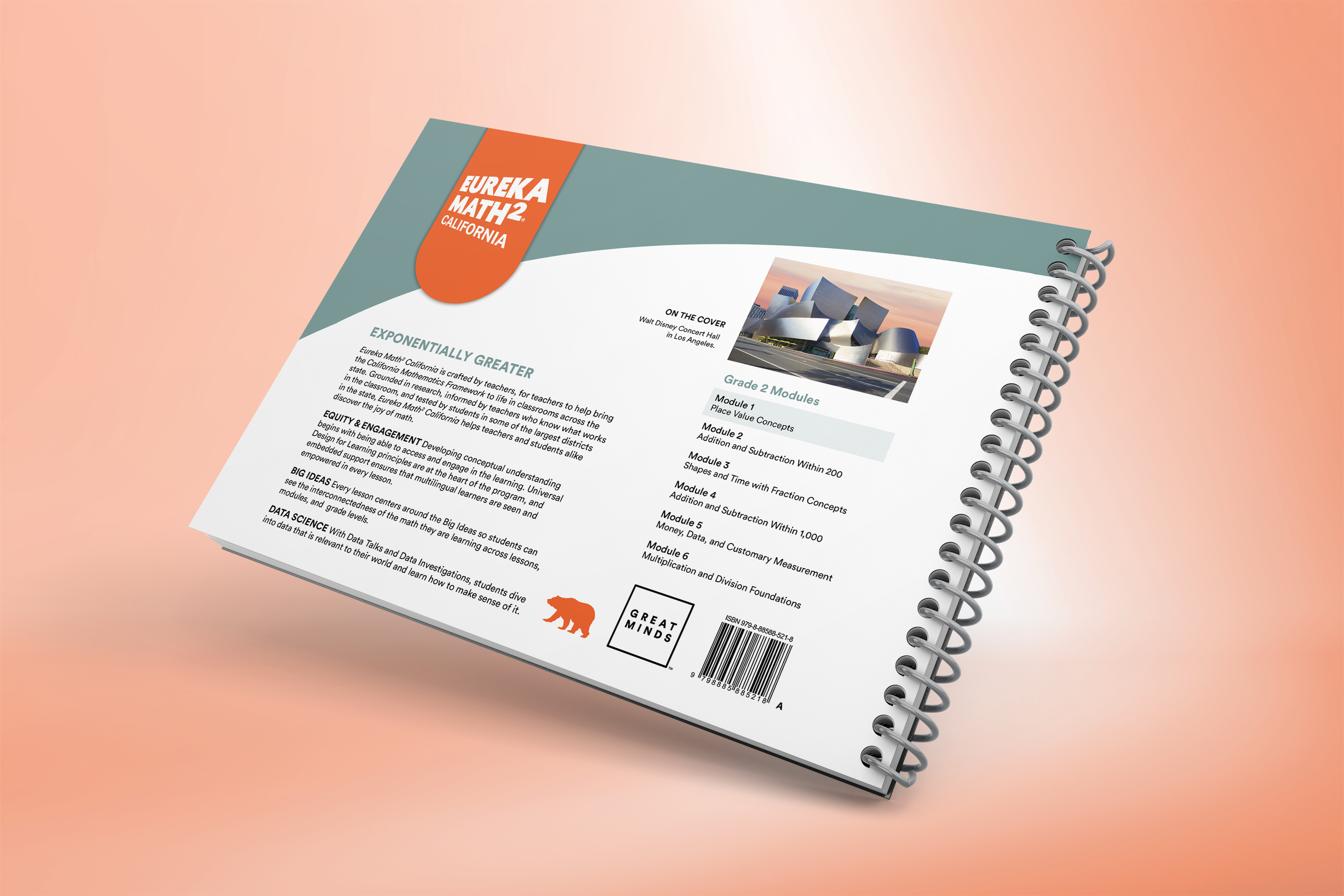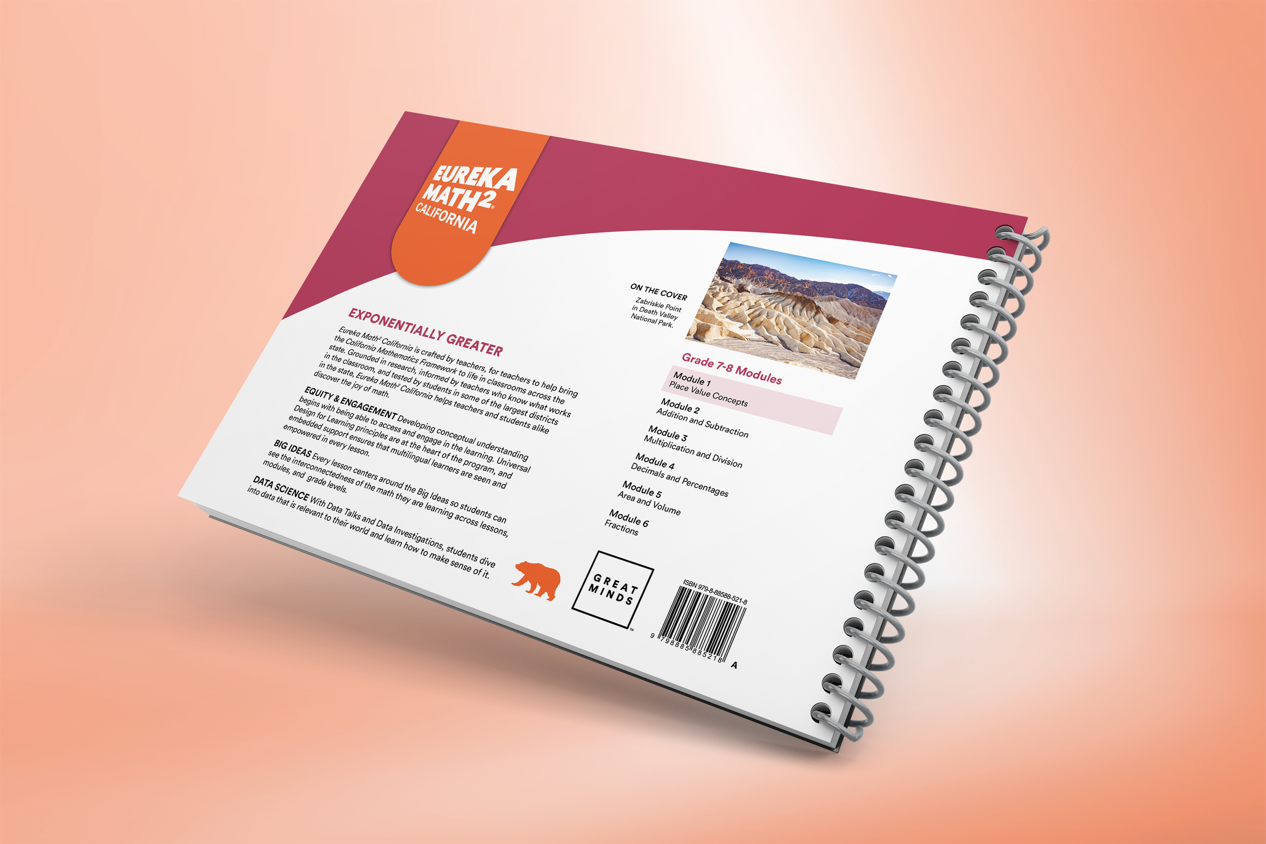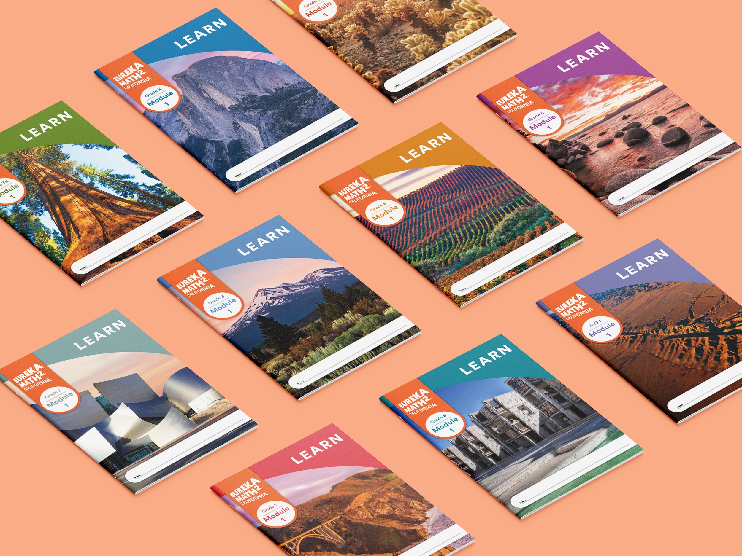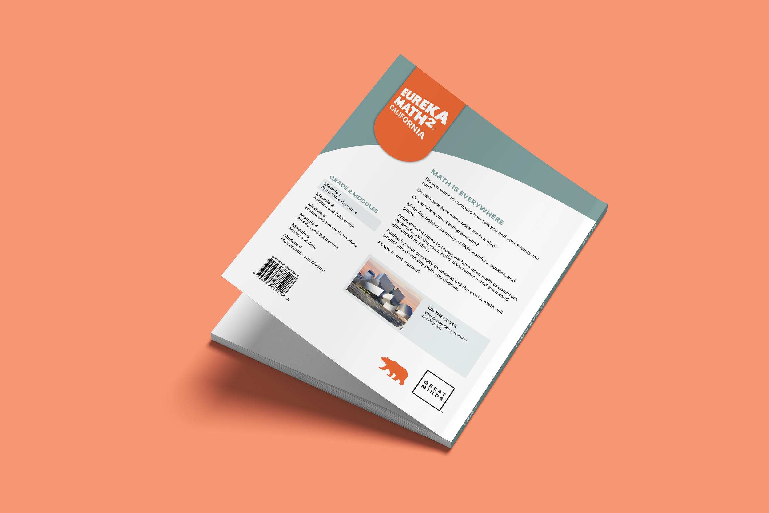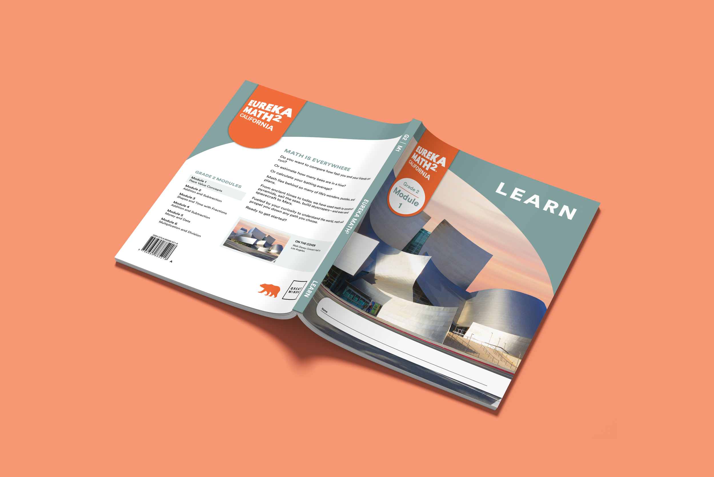 Here is the final cover design for Eureka Math² California. I designed the chosen front cover while my fellow Associate Designer, Stella Tessarollo, designed the back cover.