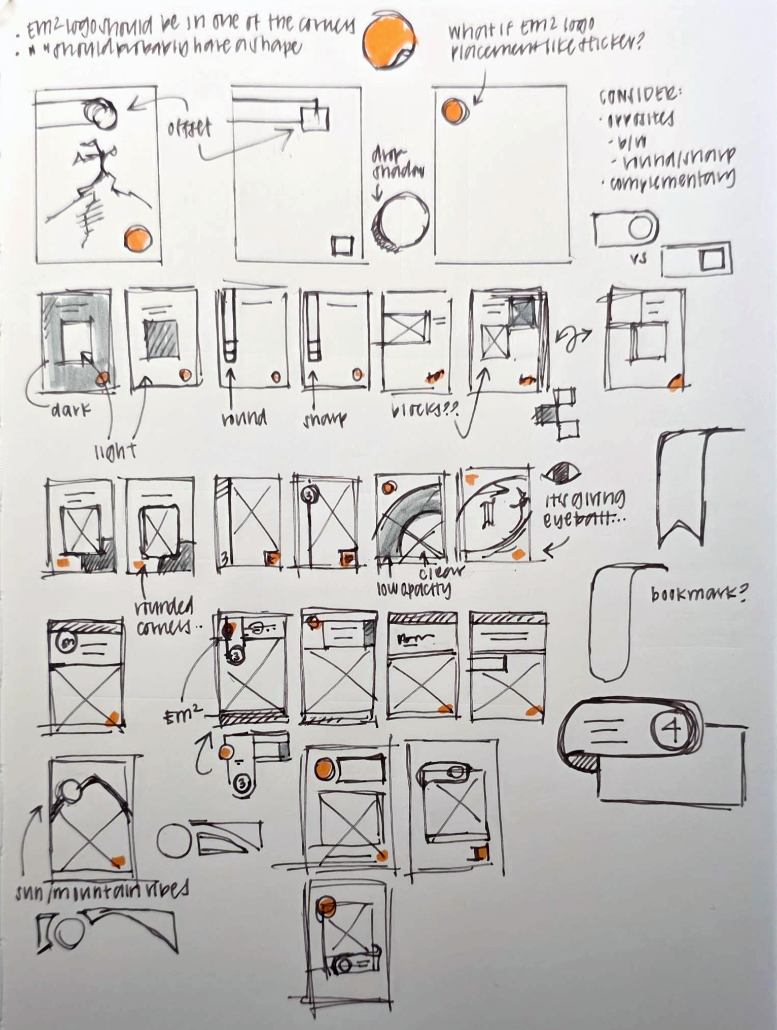 When it comes to my personal design process, I like to start off my ideation on paper first. I came up with a couple of iterations in my sketchbook before I transferred it to a digital state.